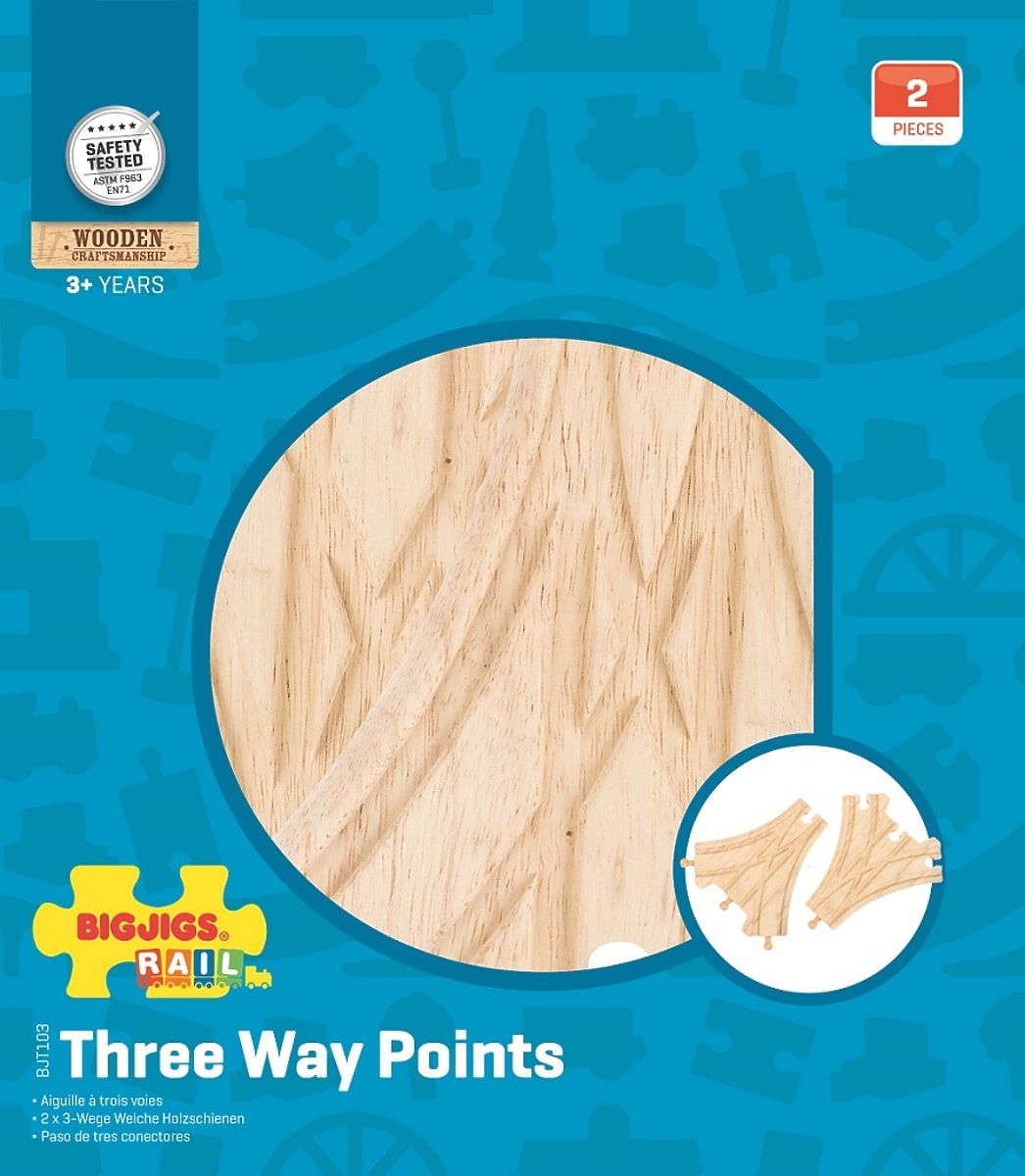 Ez a csomag 2 db BigJigs vasúti kínálatunkból származó táblát tartalmaz, melyek három irányban használhatók. Minőségi keményfából készültek, és kompatibilisek a vasúti síneink többi fa vasúti rendszerével, így remek kiegészítői a vasúti kollekciónak. Főbb jellemzők: A Bigjigs Rail vasúti sínek és tartozékai kombinálhatók a piacon lévő összes többi fából készült vasúti sínnel. Minőségi és felelősségteljes forrásból származó természetes anyagokból készült Támogatja a képzeletet, a kézügyességet és a koordinációt.