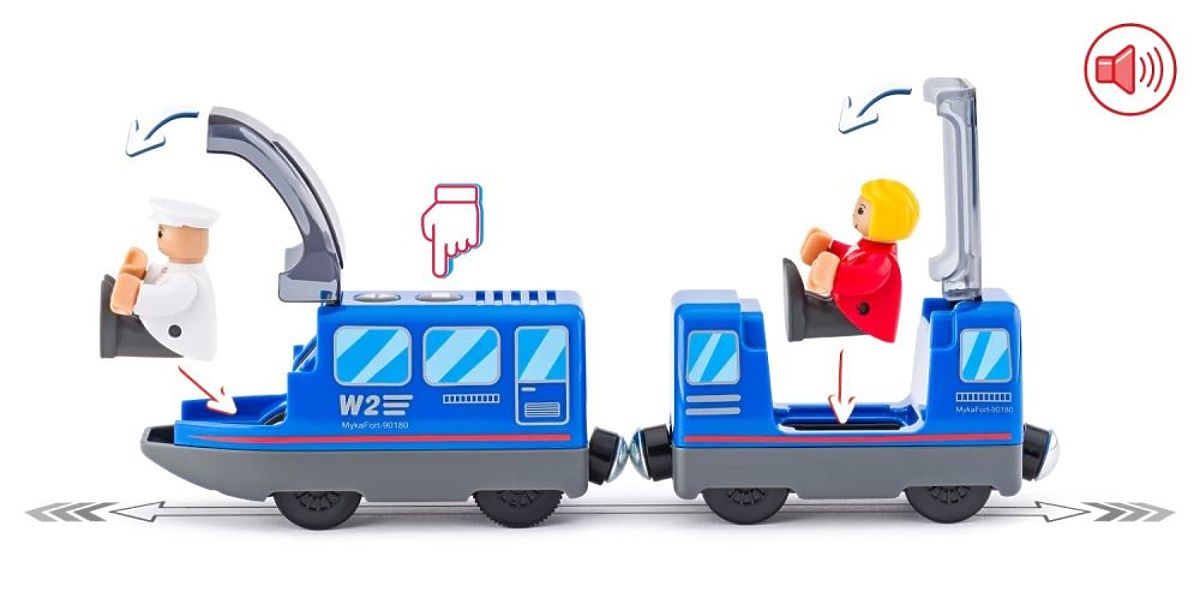 A mozdony lenyűgöző benyomást kelt a gyermekben, amikor segítség nélkül mozog a síneken. További attrakciók a nyitható ajtók a mozdonyvezető és az utas számára. Kinyitás után kivehetők. A figurák mozgatható végtagokkal rendelkeznek. A vagonok jó tapadását a mozdonyhoz egy mágnes biztosítja, amely a végén található.
