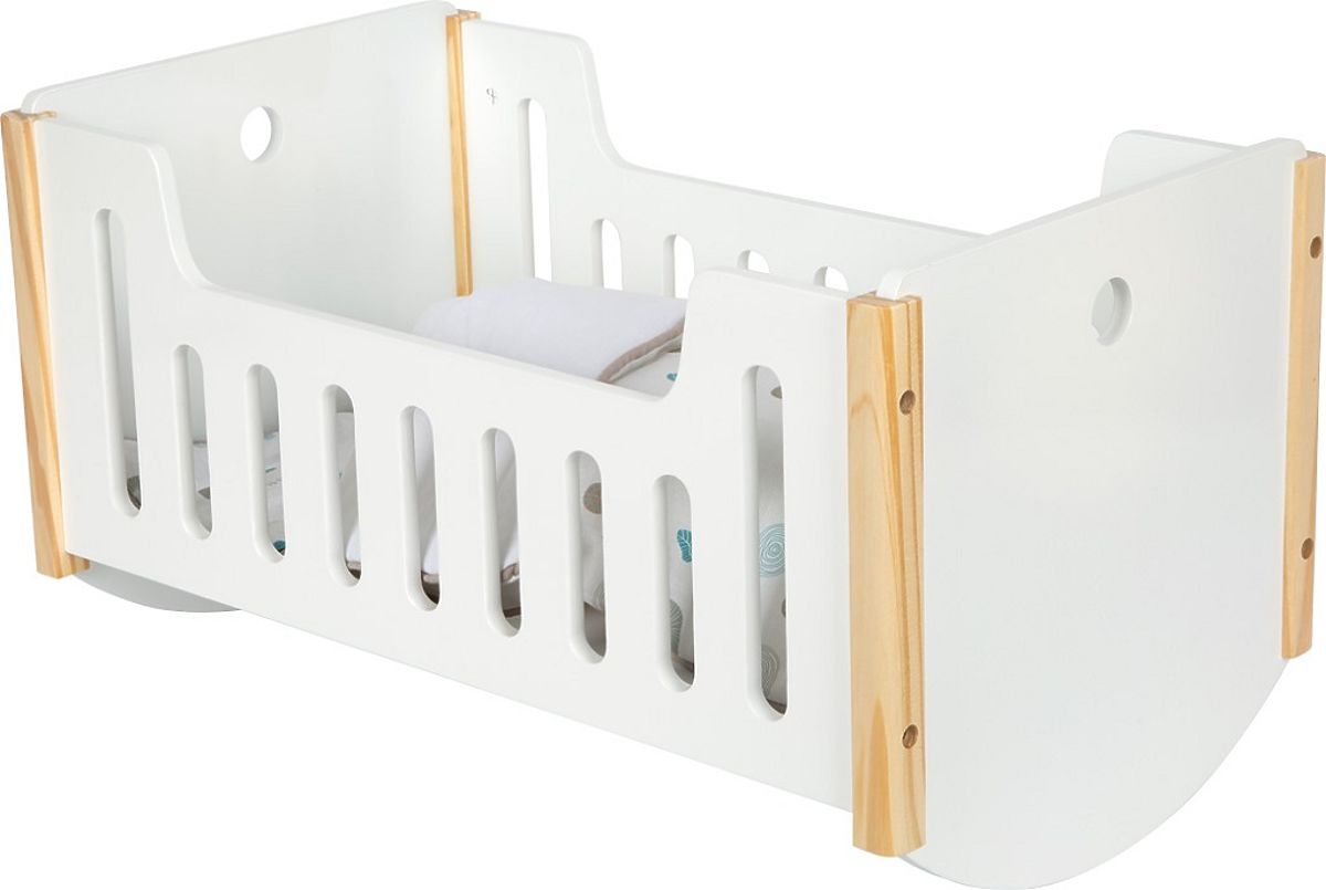 Ez a modern, skandináv dizájnú fa fészekhintó ideális kiságy babák vagy plüssállatok finom ringatásához. A csomag tartalmaz egy párnát és egy nagy paplant, amelyek színsemleges, kétoldalas huzattal vannak ellátva. A paplan elég nagy ahhoz, hogy kényelmesen aludhassanak alatta a 46 cm-es babák vagy plüssök. Kiváló minőségű, stabil szerkezet, lekerekített élek, finom színtónusok teszik a fészekhintót stílusos és minőségi darabbá. Tökéletes játék minden gyerekszobába. A csomag tartalma: 1x ágy, 1x párna, 1x takaró. Főbb jellemzők: fa fészekhintó és kiságy egyben, túlméretezett takaró, kétoldalas ágynemű, robusztus szerkezet, minőségi kidolgozás, lekerekített élek, 46 cm-es babák és plüssök számára, skandináv dizájn, finom színtónusok. Little Button A Little Button babakiegészítők vonzó sorozata széles termékválasztékot kínál, a babakocsitól az etetőszékig és a szekrényig. Az ügyfeleket könnyen megnyerik az egységes, funkcionális és visszafogott dizájnnal, amely egyenes vonalakat és visszafogott, semleges színeket használ. Így harmonikus készleteket alkothatnak, amelyek ízlésesen kiegészítik a modern belső tereket. Az átgondolt szerkezet és a minőségi kidolgozás segít biztosítani a magas stabilitást, biztonságot és hosszú élettartamot. Segítségükkel stílusos babasarkot hozhat létre, ahol gyermekeik fejleszthetik fantáziájukat és gondoskodási készségeiket.