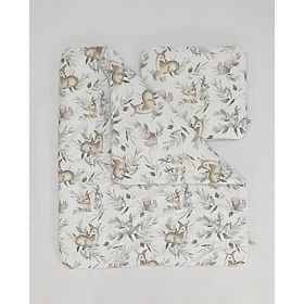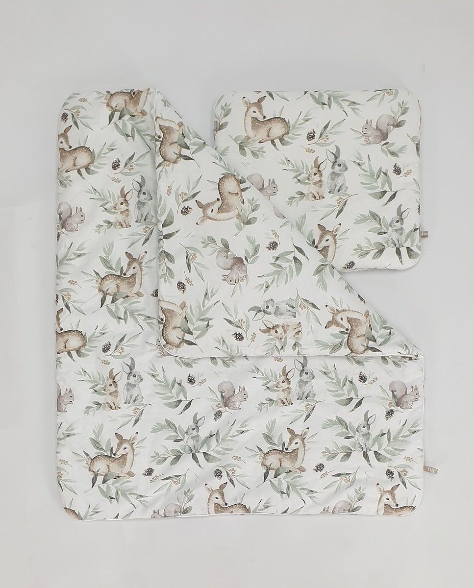 Ez a fonott kosár tökéletes és otthonos alvóhelyet teremt a babának a ház bármely részén. A fehér kosár része egy 5 részes ágyneműkészlet erdei állatok mintával, vonzó gofri pamutból.