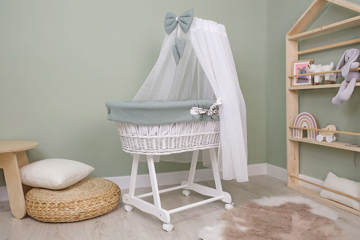 | Rácsos kiságy anyaga: | vessző / tömör fa |