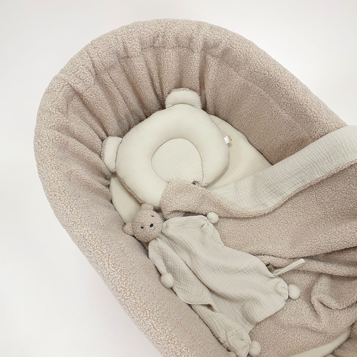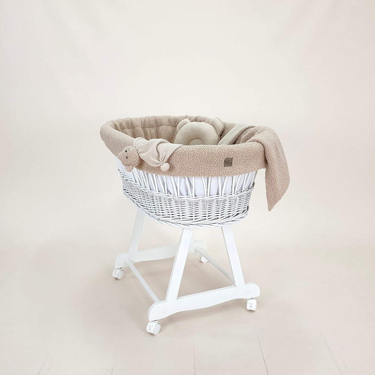 Banaby.hu » Gyerekbútor / Babaágyak / Fonott mózeskosarak / Fonott Teddy babaágy - fehér szín bézs felszereléssel