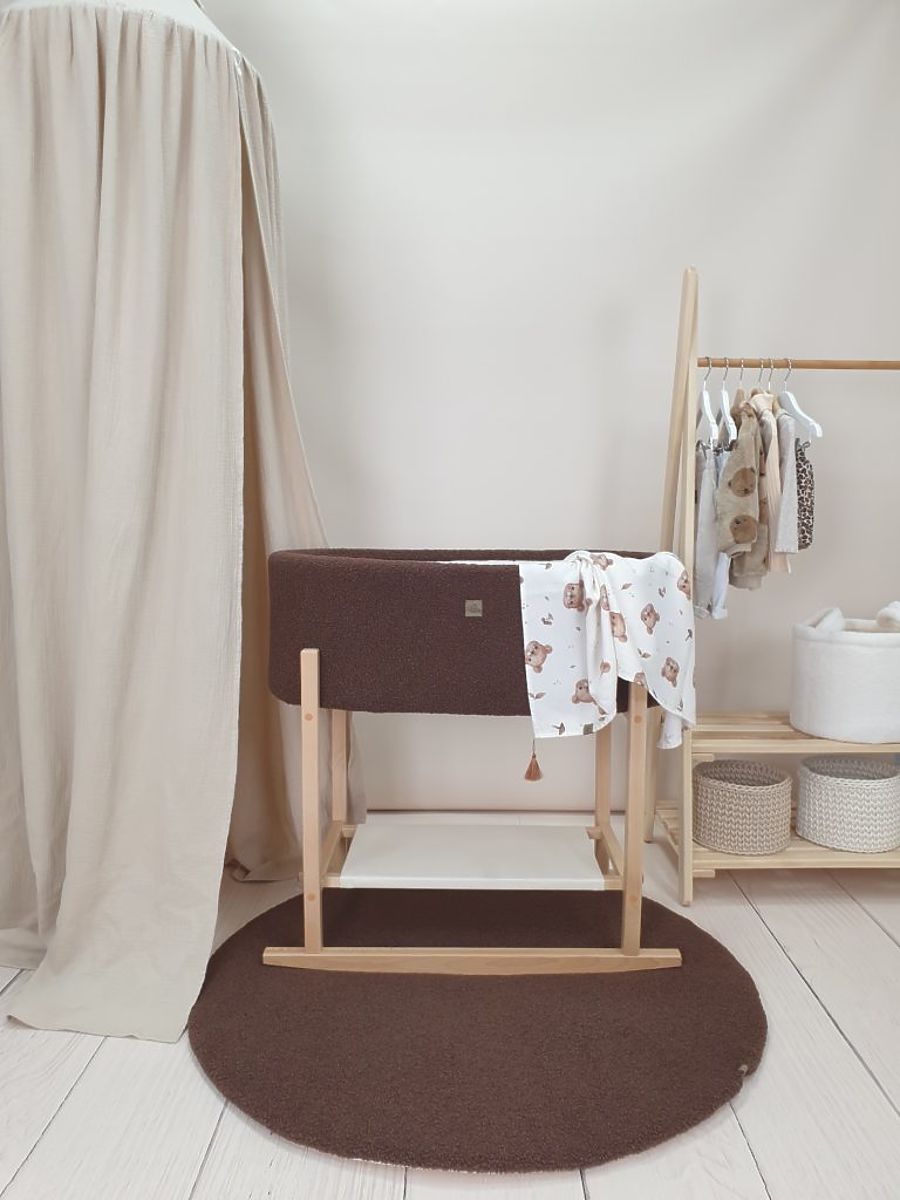 Stílusos és praktikus Mózes kosár babáknak barna kivitelben, amely ötvözi a kényelmet, biztonságot és a modern dizájnt. Ideális választás azoknak a szülőknek, akik újszülöttjük számára otthonos és biztonságos alvóhelyet szeretnének biztosítani.