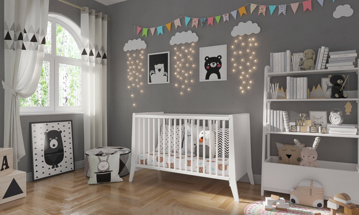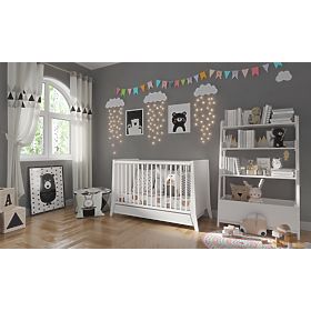 Az eredeti fehér Cosmo gyerekágy modern dizájnnal. Standard méret 120x60 cm, tárolóval vagy anélkül. Újszülött kortól 100 cm magasságig alkalmas.