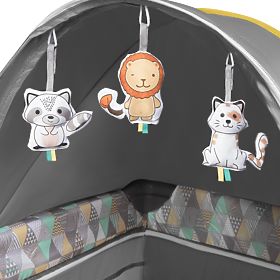 A kiságy LockGuard biztonsági rendszerrel van felszerelve, amely megakadályozza a véletlen összecsukását, különösen, ha a gyermek áll vagy ugrik. A könnyű mozgatást elősegítő kerekek fékkel rendelkeznek, amely megakadályozza a kiságy véletlenszerű elmozdulását . A védőtető és a szúnyogháló biztonságos kültéri használatot is lehetővé tesz. A hálós oldalak lehetővé teszik, hogy játék vagy alvás közben figyelje a babát, és jó levegőkeringést is biztosít.