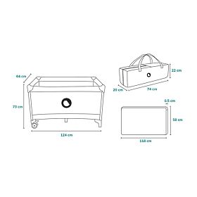 A kiságy oldalai léghálóból készültek, ami biztosítja a jó légáramlást. A kiságy gyorsan összecsukható és könnyen mozgatható, amiben két kis kerék segít. Kompakt méretei és a készletben található praktikus fogantyús táska kényelmessé teszik a Lionelo Stefi utazóágyat a tároláshoz és a szállításhoz.