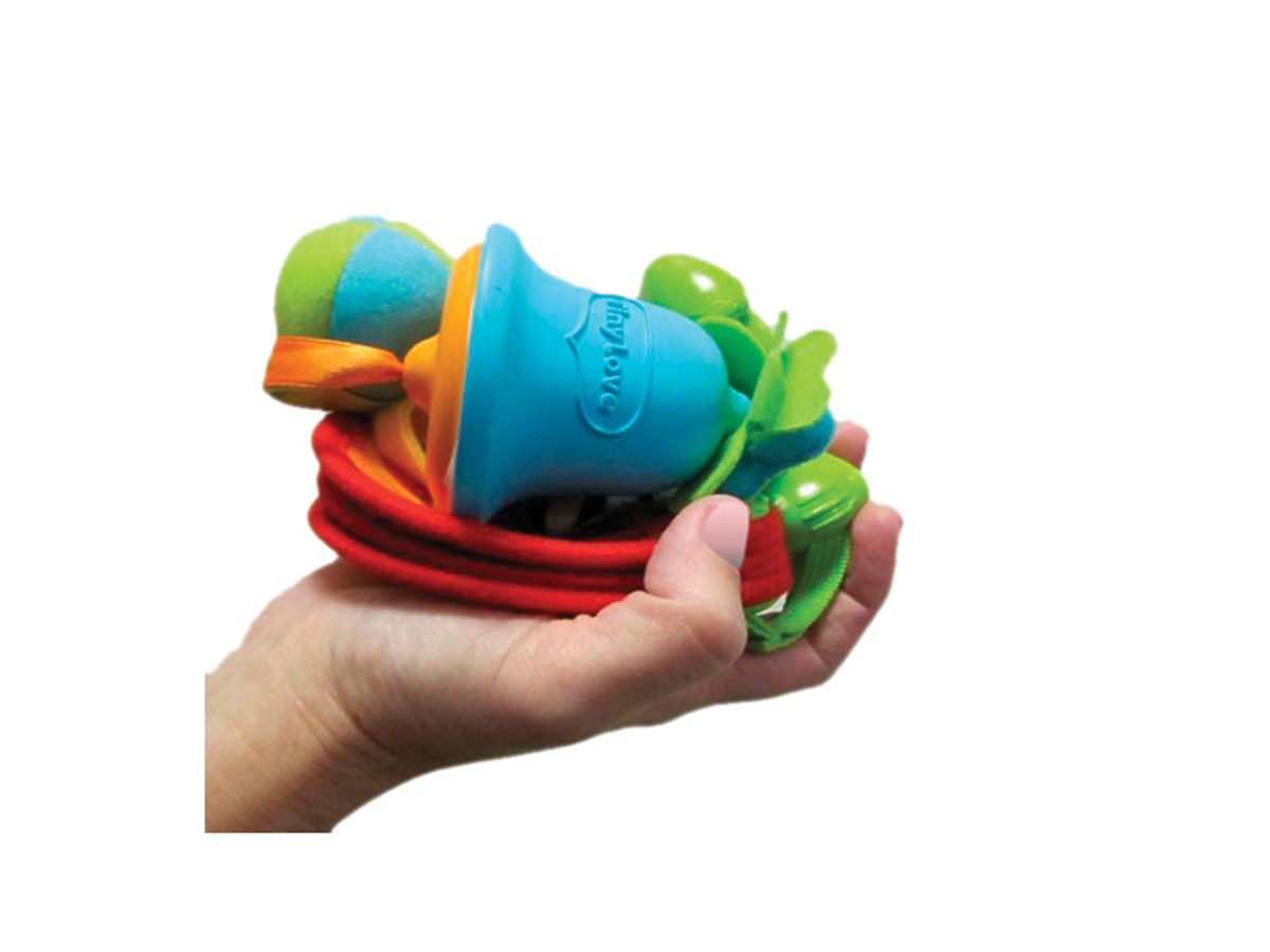 A mini csengő mozgatásakor cseng és a lógó játékok sistyeregnek. Ezek a hangos, a biztonságos tükör, a vidám színek és a változatos formák, és textúrák vonzák a gyerekek figyelmét.