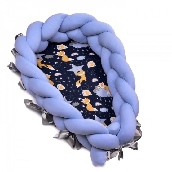 Ez az elegáns kötött fészek az éjszakai égbolt színeiben, rókamotívummal nemcsak modern kialakításával, hanem főleg multifunkcionalitásával nyer el. A baba fészke meghatározott védőhelyet hoz létre, hasonlóan az anya pocakjához, és ezzel maximális biztonságot nyújt. A baba kényelmesebbnek érzi magát, mint a szabadban, és ez biztosítja a jó alvást.