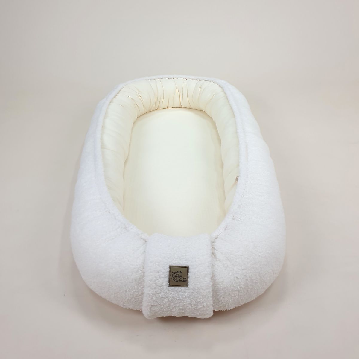 Banaby.hu » Csecsemő kiegészítők / Babafészkek / Muszlinból és bárányból készült Teddy babafészek - ekrü