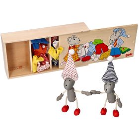 A fából készült egerek nagyszerű szórakozást biztosítanak, és tökéletes eszközei lesznek a gyermek finommotorikus készségeinek fejlesztéséhez. A bábok teste hajlékony, a karok, lábak hajlíthatók, így például le is ülhetnek.