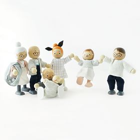 Boldog család! Ez a 7 darabos fafigura készlet készen áll a családi kalandokra. A figurák gyönyörű, kézzel varrott ruhákba vannak öltöztetve. Méretük minden babaházhoz (pl.: 37379) és a Le Toy Van márka termékeihez igazodik.