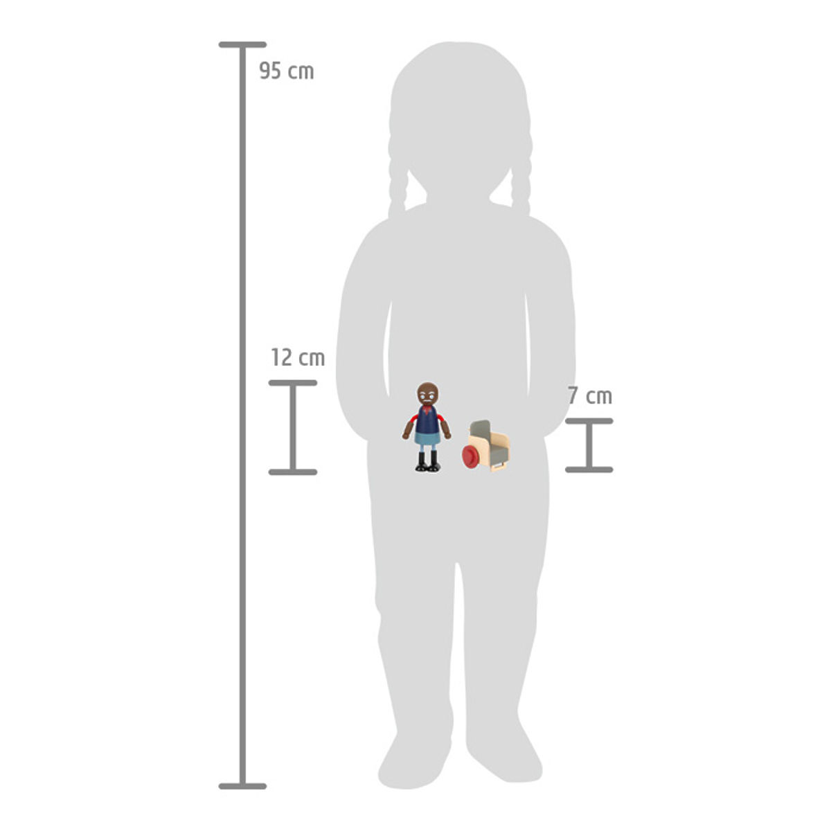Dobj színt a gyűjteményedbe! Ez a modern, 6 tagú fa babacsalád új otthonra vár! A hajlítható babák különböző neműek, korúak és bőrszínűek. A fej és a test tömör fából készült. A karok és lábak hajlíthatók. A látás- vagy mozgáskorlátozások játékba integrálhatók olyan részletekkel, mint a szemüveg és a kerekesszék. A szerepjáték ezzel a készlettel elősegíti az azonosítás, a kommunikáció, a képzelet és a szociális készségek fejlődését. Főbb jellemzők: fejleszti a képzelőerőt és kreativitást, finommotoros készségeket gyakorol, támogatja a kommunikációt és szociális képességeket