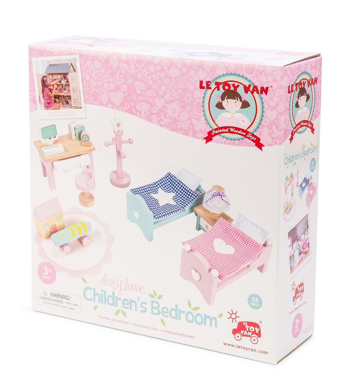 Teremtsen mesebeli helyet a szereplők otthoni pihenésére ezzel a festett fából készült bútorkészlettel. A méret illeszkedik a Le Toy Van fa babaházaihoz. Egy gyönyörű, 6 részes készlet ötletes játékra ösztönzi a gyerekeket.A két ágyon párnák és paplanok találhatók, emellett találsz egy éjjeliszekrényt lámpával és egy ruhaakasztót is. Asztal és szék ideális tanuláshoz, még PC és könyvek is járnak hozzá! A Daisylane sorozat egyéb felszereléseit is megtalálja kínálatunkban. Célszerű játékok Minden Le Toy Van játék azzal a céllal készült, hogy sokáig kitartson. Képzett kézművesek szeretettel tervezték, etikus gyakorlatok és fenntartható anyagok felhasználásával, amelyek kíméletesebbek bolygónkhoz. Főbb jellemzők: 1:12 méretarányú etikusan, fenntartható anyagokból készült, kompatibilis más Daisylane termékekkel, etikusan a legszigorúbb szabványok szerint tesztelt fenntartható fából készült, nem mérgező vízbázisú festékekkel festve kreatív és fantáziadús játékra inspirál Daisylane kollekció: tekintélyes babaházak és tartozékok a Le Toy Van-tól. Több mint 25 évvel ezelőtt az alapító Georges megtervezte legelső babaházát, a cég építőkövét. A fenntartható anyagokból etikusan készült Daisylane fa babaházak egyediek, és nem fogják vissza a gyerekek fantáziáját. Családi örökség, igazi játékbefektetés.