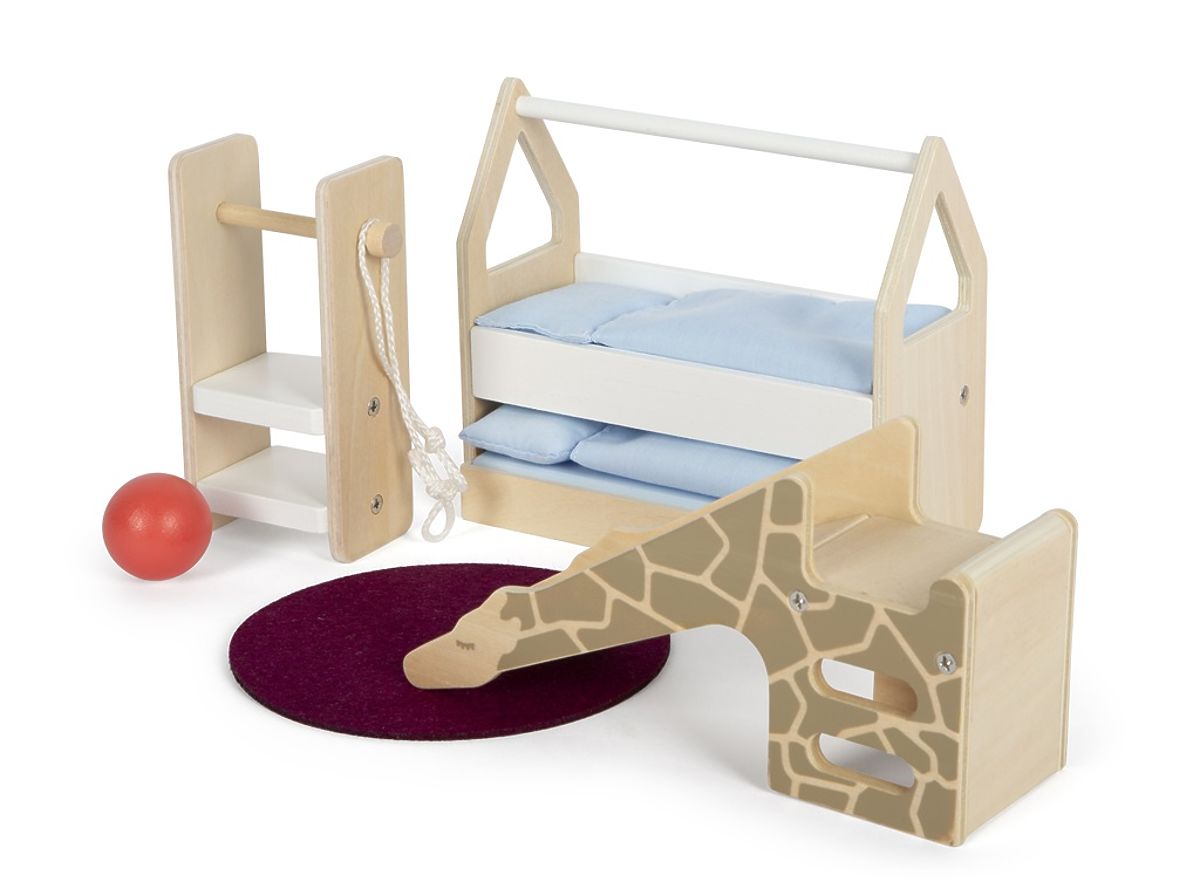 Milyen gyönyörű szoba! Biztosan tetszeni fog a gyermekeinek is. Ez a babaszoba nemcsak szép kiegészítője minden babaháznak, hanem ösztönzi a gyerekeket a kreatív játékra és fejleszti a képzelőerejüket. Úgy készült, hogy a lehető legjobban hasonlítson a valódi bútorokra. Tartalmaz egy ház alakú ágyat kihúzható vendégággyal, ágyneműt, ruhafogas polcot, labdát, ugrókötelet és egy nagy játszószőnyeget. És a legjobb a végére: a Zsiráf csúszda, amelyet a Zsiráf Wildlife gyerekcsúszda alapján terveztek (termékszám: 12424). Főbb jellemzők: modern és elegáns babaszoba bútor, Zsiráf csúszda valódi gyerekcsúszda alapján tervezve, fejleszti a képzelőerőt és ösztönzi a kreatív játékot.