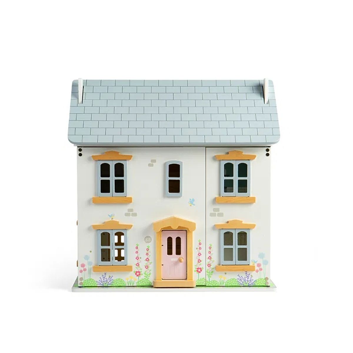 Üdvözöljük a stílusos nyári babaházban, amely finom pasztell színekben pompázik, és a homlokzaton rengeteg virággal díszítve idézi a nyár és a nyugalom .. többet