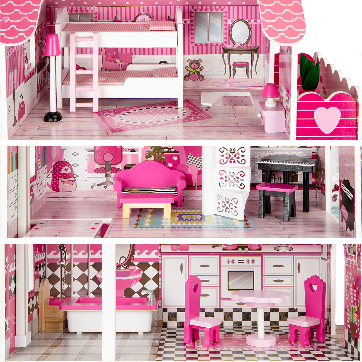 Ennek a gyönyörű Victoria faháznak biztosan örülni fog minden fiatal hölgy. Hét szoba, három emelet, mozgó lift és fából készült bútorok sok órányi szórakozást garantálnak.