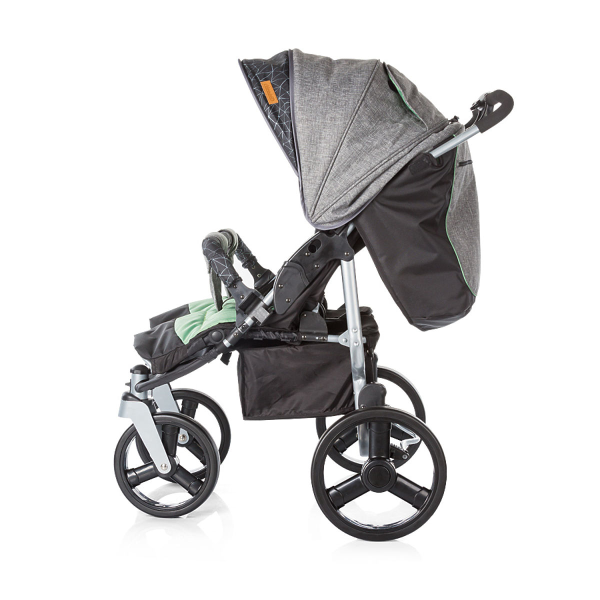 A háttámla lehet elhelyezni egy összesen öt pozíció, vagyis addig, amíg a fekvő helyzetben. Biztonsági övek öt pontot párnázott. A babakocsi egy nagy tároló kosár, fogantyú, amelyek eltávolítják az első kereket, hogy forog 360 fokban azzal a lehetőséggel, rögzítés.