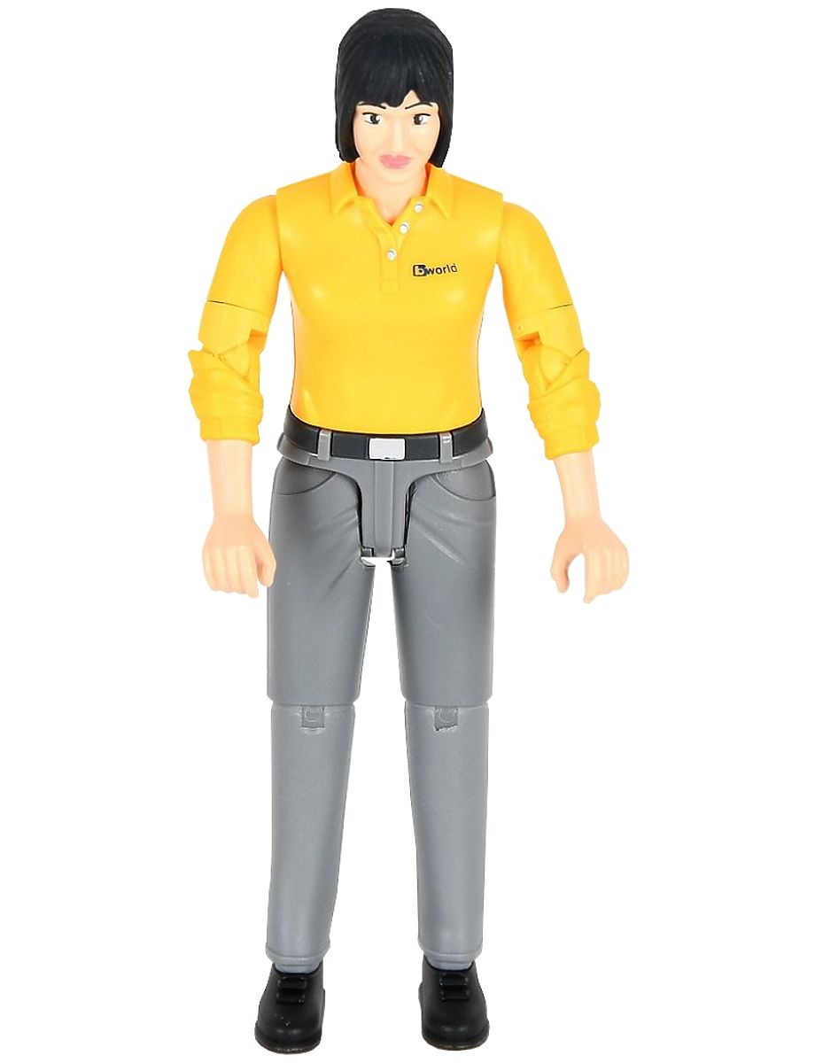 Banaby.hu » Játékok / Figurák, állatok és kiegészítők / Bruder BWORLD női figura sárga pólóban, szürke nadrágban