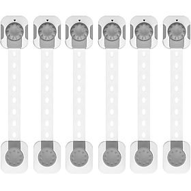 6 db állítható szekrény- és fiókzár készlet könnyen zárható funkcióval, amely gyors hozzáférést biztosít a felnőttek számára, de megakadályozza a kisgyermekek kinyitását.