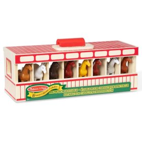 A készlet tartalmaz egy fa istállót, nyolc dobozzal és 8 különböző színű lófigurával. Az istállónak van egy nyitott ajtaja, fém pántokkal és fogantyúval, amelynek köszönhetően az egész játék könnyen hordozható.