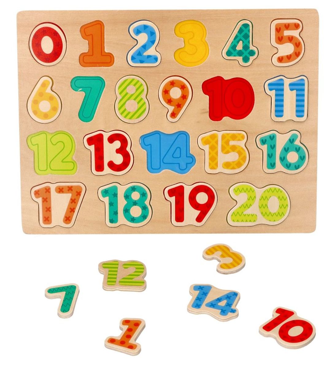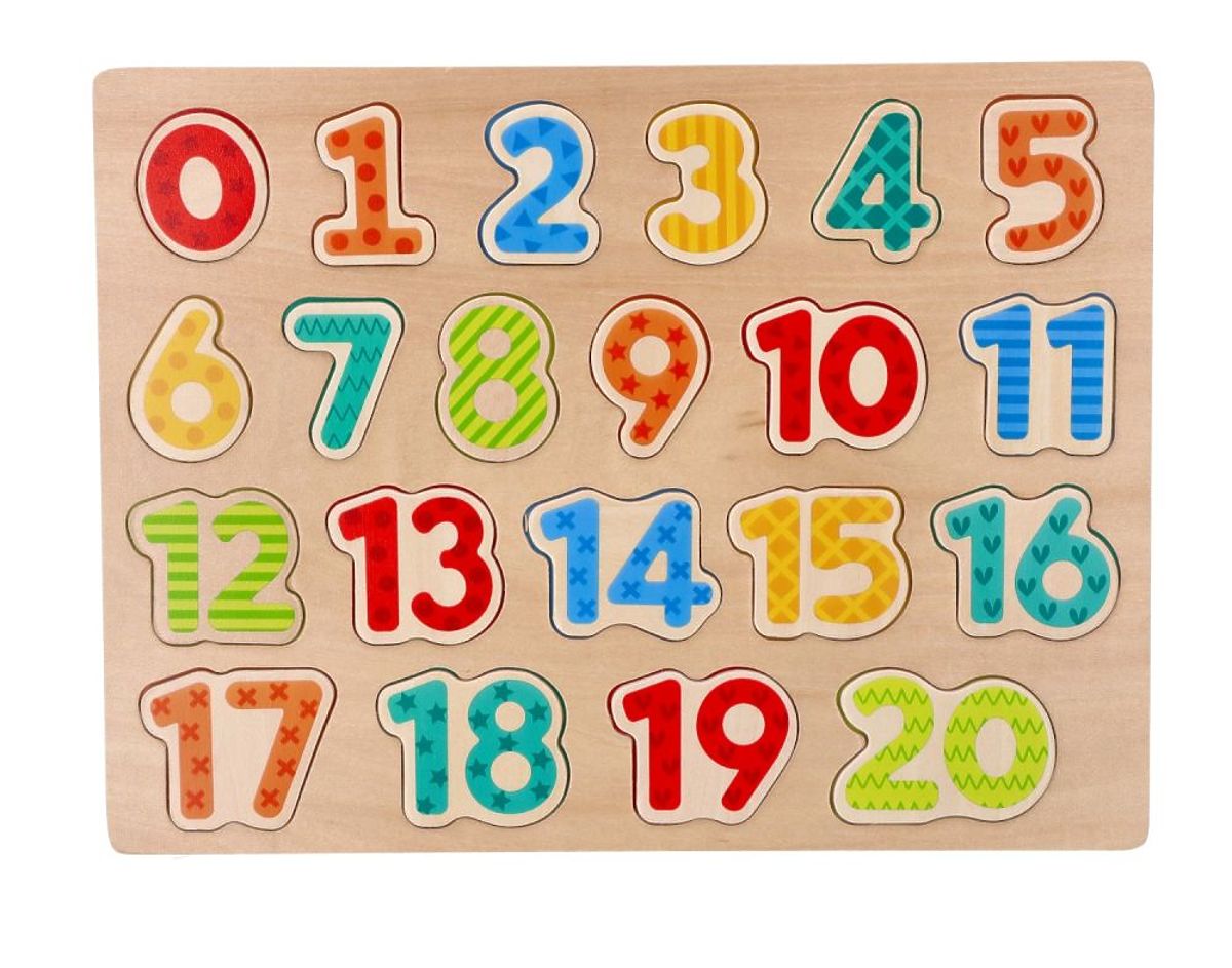A számokkal ellátott puzzle egy klasszikus játék, amely természetes fából készült. A készlet 21 számot tartalmaz: számjegyeket 0-tól 9-ig és számokat 10-től .. többet