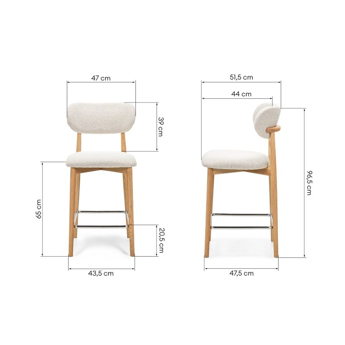 Az Amalfi bárszék az elegancia és a funkcionalitás kombinációja, amely biztosan átalakítja bármely helyiséget. Krémszínű kárpitozása kellemes anyagból készült, amely melegséget és otthonosságot kölcsönöz a belső térnek, miközben kényelmet biztosít a konyhaszigetnél eltöltött hosszú órák során is.