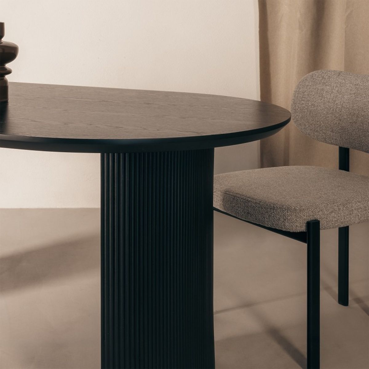 A Maurizio asztal kiváló választás azok számára, akik különleges elemet szeretnének hozzáadni az étkezőjükhöz. Ovális asztallapja kényelmes helyet biztosít a közös étkezésekhez, és a masszív, rovátkolt alap stabilitást és egyedi dizájnt garantál.
