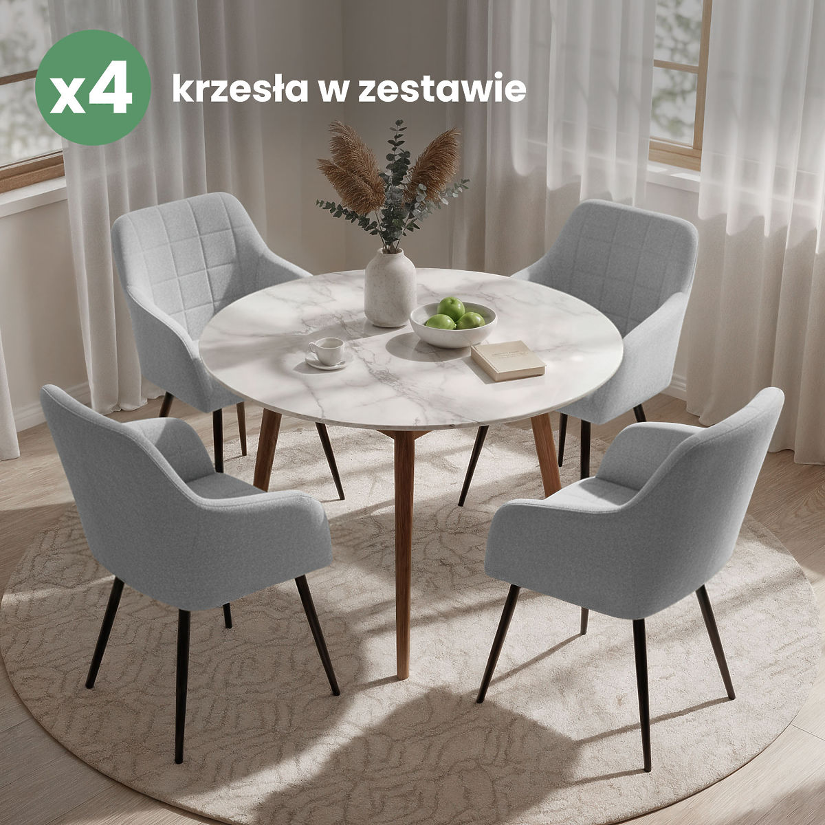 A kárpitozott székek esztétikus megjelenést ötvöznek a használati kényelemmel, és jól illeszkednek különböző belső stílusokhoz. Univerzális formájuk alkalmassá teszi őket étkezőbe, nappaliba vagy irodai térbe. Két anyagváltozatban kaphatók – Lumos szövetben vagy velúrban.