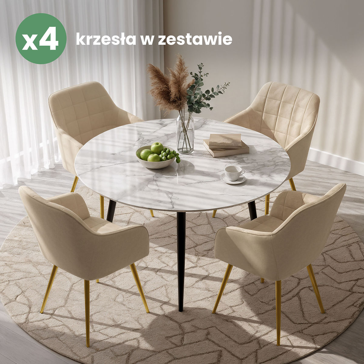 Banaby.hu » Bútor / Étkező bútorok / Étkezőszékek / 4x Kárpitozott szék négyzetes steppeléssel Bézs LUXANO Arany lábak