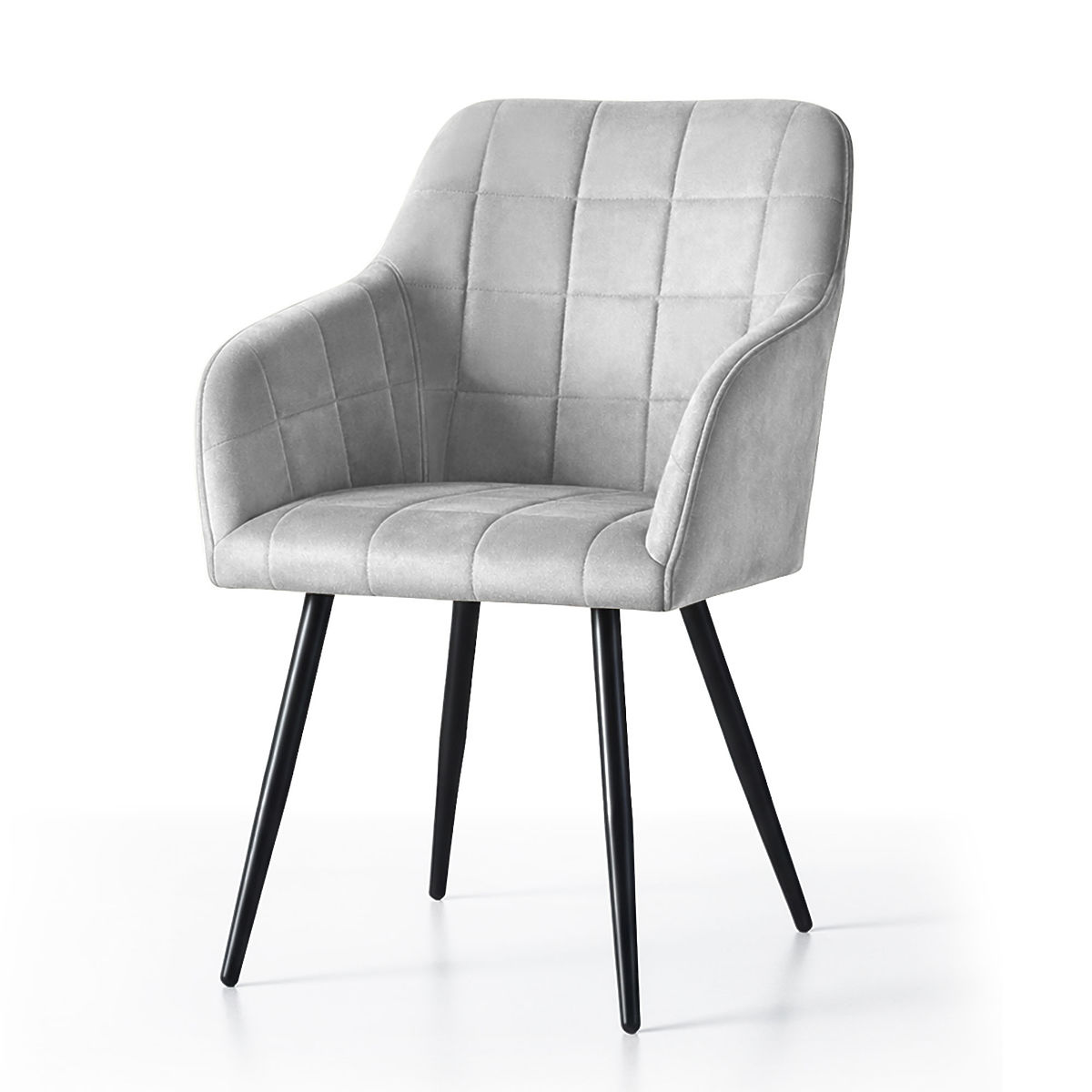 Banaby.hu » Bútor / Étkező bútorok / Étkezőszékek / 4x Kárpitozott szék négyzetes tűzéssel Szürke LUXANO Fekete lábak
