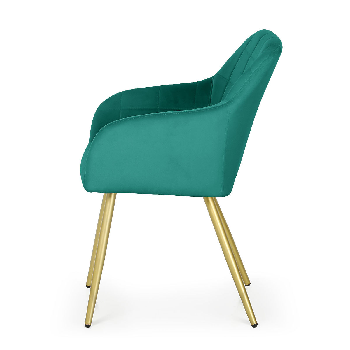 Kárpitozott étkezőszék smaragdzöld színben, arany lábakkal. .. többet
