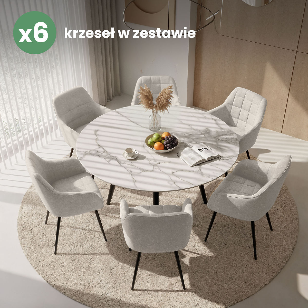 Banaby.hu   »   Bútor   /   Étkező bútorok   /   Étkezőszékek   /   6x Kárpitozott szék négyzetes varrással Krém LUXANO Fekete lábak Lumos szövet