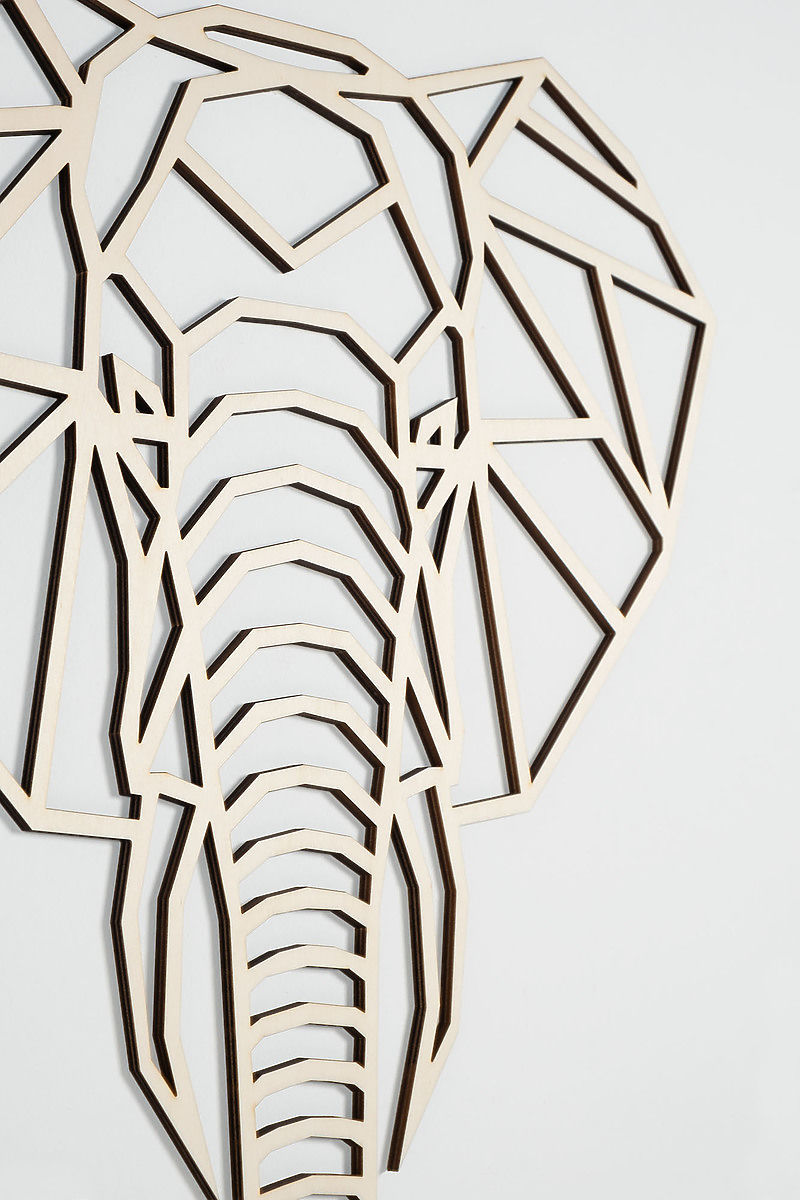 Fából készült geometrikus figura elefánt formájú. A függő rétegelt lemez dekoráció alkalmas skandináv stílusú gyerekszobába. Válasszon több változat közül .. többet