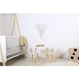 Fából készült geometrikus figura elefánt formájú. A függő rétegelt lemez dekoráció alkalmas skandináv stílusú gyerekszobába.