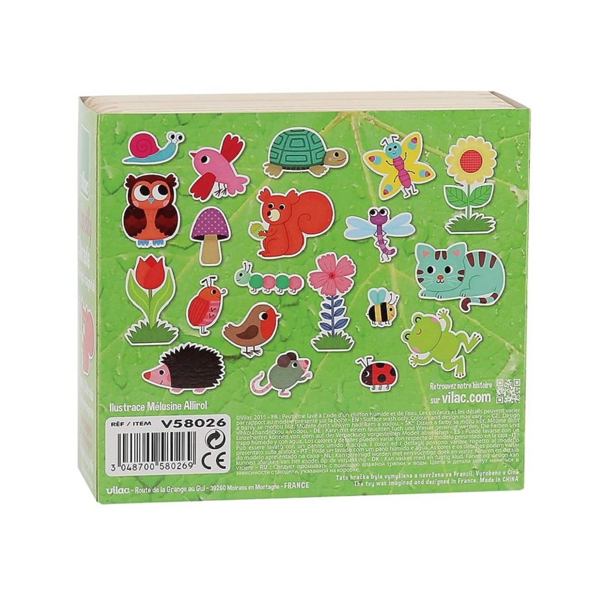 Húsz kerti témájú famágnes, amivel a gyerekek elkészíthetik saját történeteiket. Főbb jellemzők: 20db mágnes, játékos illusztrációk, szobába és hűtőre illő dekorációs elem, ökológiailag előállított, környezetbarát