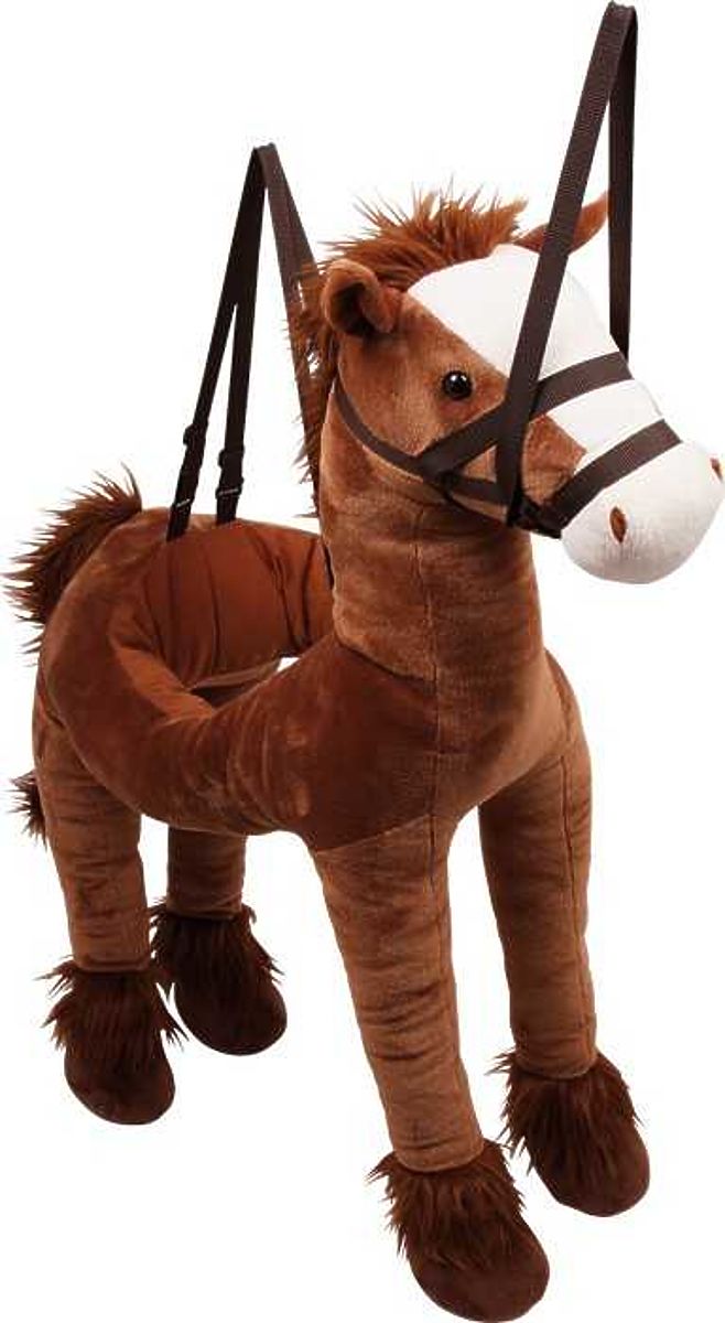 Igazi sláger ez a puha lovacska, amelyet fel lehet venni! A lovas egyszerűen „belelép” a puhán párnázott lóba, beállítja a pántokat a kívánt hosszúságra, és már .. többet