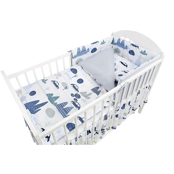 Ágyneműkészlet játékmotívummal 120x60 cm és 140x70 cm méretű kiságyakhoz. Az ágynemű stílusos és alkalmas kiságy elhelyezésére. A fehér és a világoskék dominál .. többet