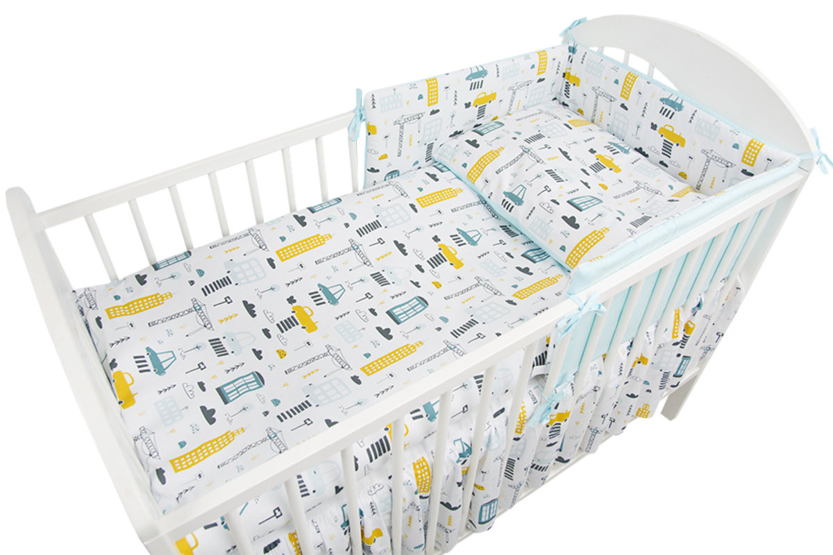 City motívummal ellátott ágyneműkészlet 120x60 cm és 140x70 cm méretű kiságyakhoz. Az ágynemű stílusos és alkalmas kiságy elhelyezésére.