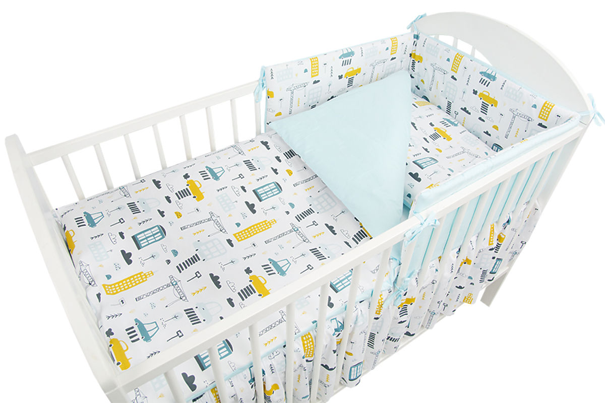 Banaby.hu » Ágyneműk / Gyerek ágyneműhuzatok / Ágynemű szettek rácsos babaágyba / Ágynemű szett 135x100 cm City - türkiz