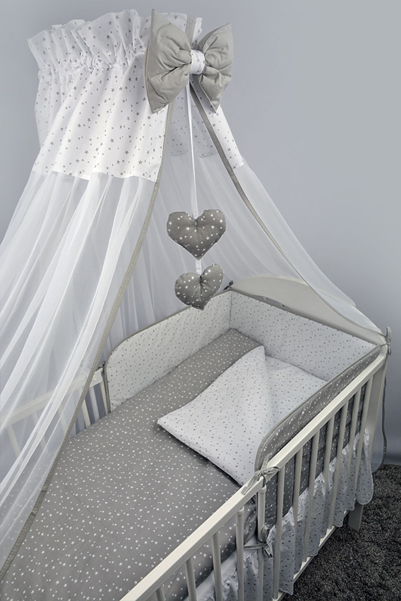 Ez a csodálatos babaágy ágynemű szett az éjszakai égboltra emlékeztet, ezer apró kis csillaggal. Gyönyörű csillagkép, amellyel minden gyermeknek szép álma lesz.