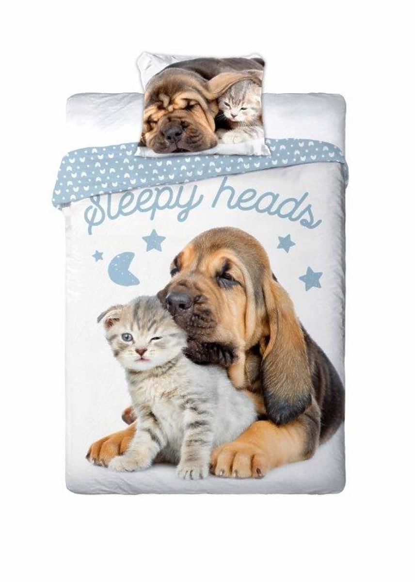 Banaby.hu » Ágyneműk / Gyerek ágyneműhuzatok / Gyerek pamut ágyneműhuzatok / Gyermek ágynemű 140x200 cm + 70x90 cm kiskutya és cica