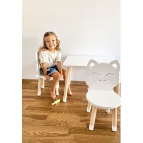 Gyönyörű fa asztal és két szék készlet cica formájában, amelyet gyermeke biztosan megszeret. Ez az eredeti készlet egy hangulatos sarkot hoz létre rajzoláshoz, olvasáshoz vagy uzsonnához.