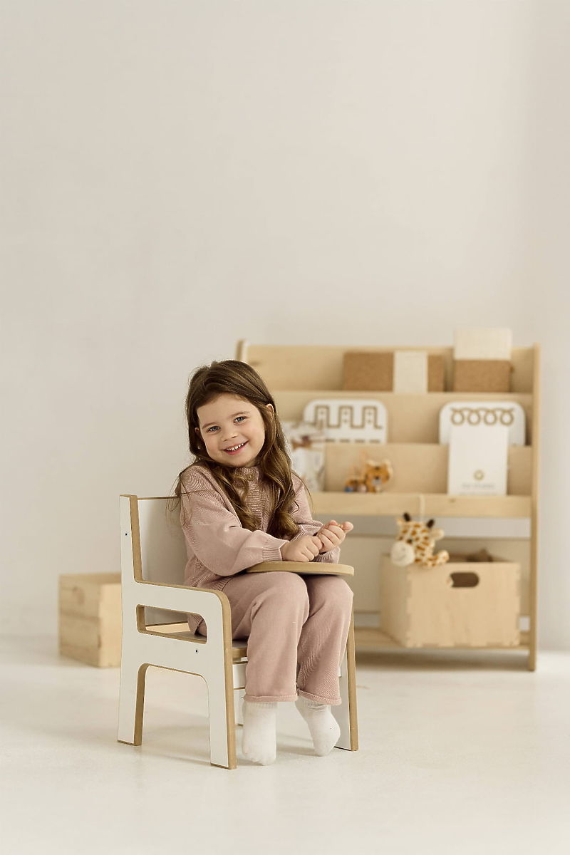 A fa gyermek szék különböző korú gyermekek számára alkalmas – szolgálhat egyéves gyermeknek, aki felfedezi a világot, valamint idősebb, kreatív óvodásnak is. Stabil hát támaszt nyújt, miközben kényelmes ülést biztosít játék, rajzolás vagy étkezés közben. Kiválóan használható a konyhában vagy a fürdőszobában is – a gyermek felállhat az ülésre, és könnyen elérheti a munkalapot vagy a mosdót. Minden él gondosan lekerekített, hogy a kis felhasználók maximális biztonságát biztosítsa.