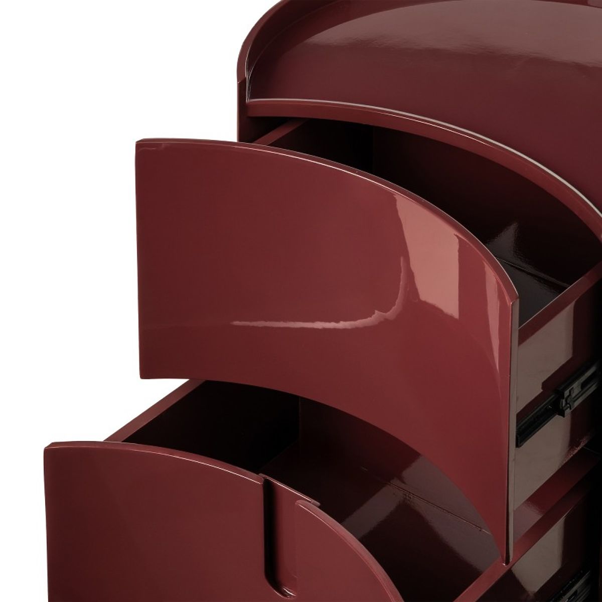 Lekerekített, fényes éjjeliszekrény bordó és barna színben. .. többet