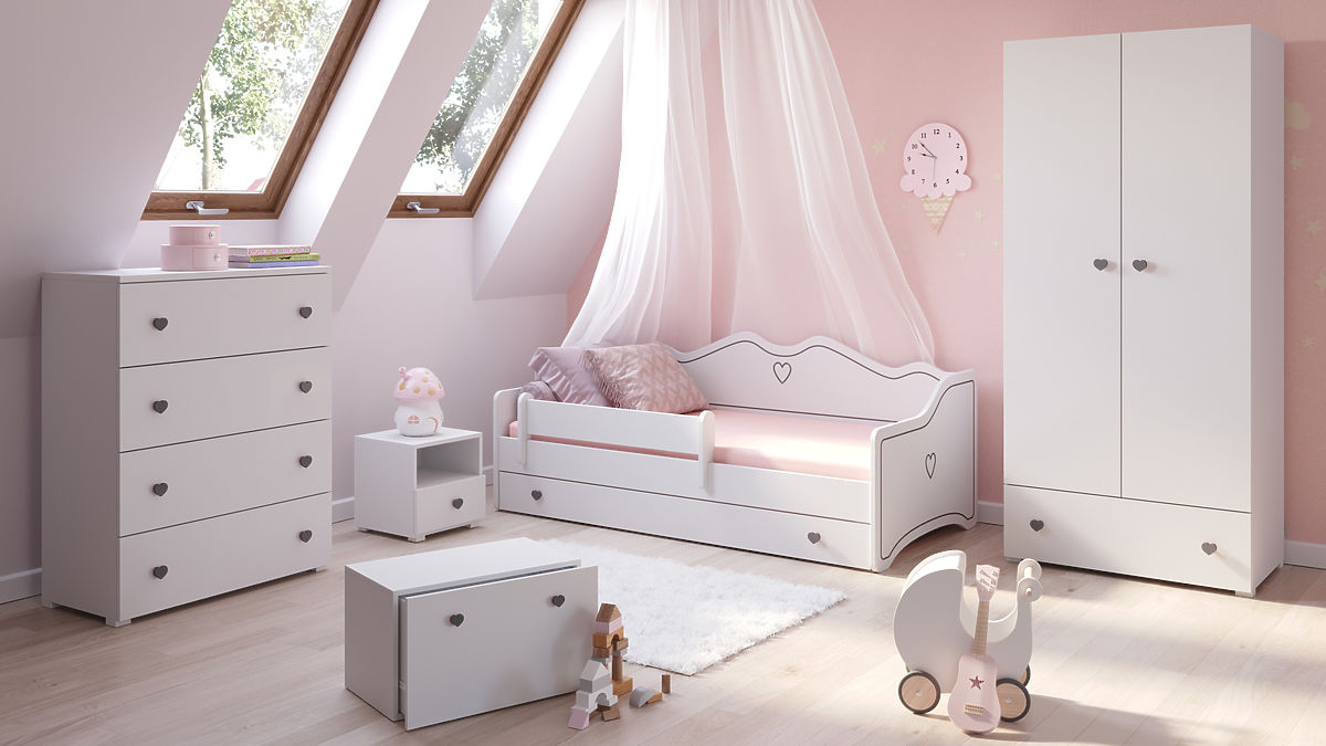 Az EMI éjjeliszekrényt a kényelem és a funkcionalitás szem előtt tartásával tervezték. Praktikus fiókkal van felszerelve, amely lehetővé teszi apró tárgyak, például könyvek, játékok vagy kiegészítők tárolását, így segít rendet tartani. A laminált bútorlapból készült masszív szerkezet biztosítja a tartósságot és az ellenállást a mindennapi használattal szemben. További előnye, hogy a fogantyú színének kiválasztásával az éjjeliszekrény stílusához igazítható, ami személyre szabott elemet hoz, amit a gyerekek imádnak.