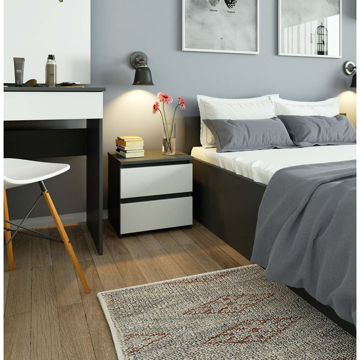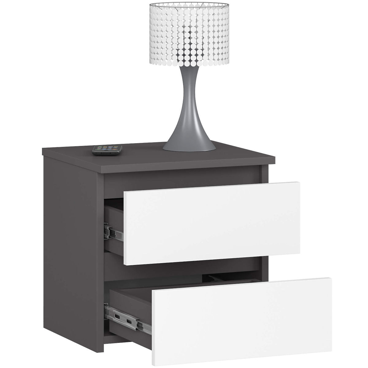 Grafit szürke és fehér éjjeliszekrény 2 fiókkal. .. többet