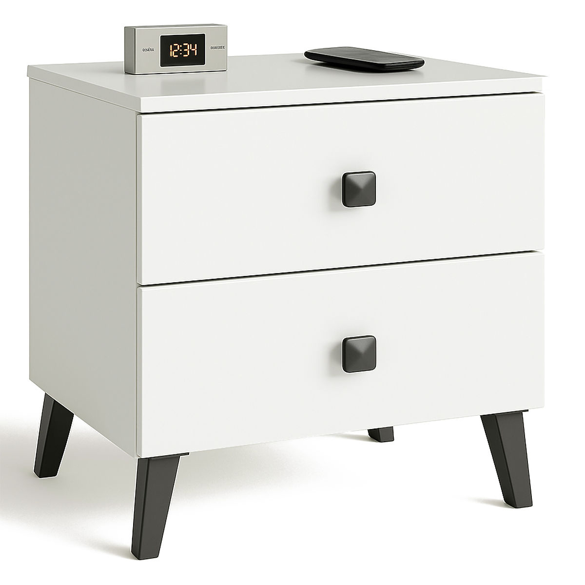 A MOBI K02 éjjeliszekrény fehér és fekete kombinációja. .. többet