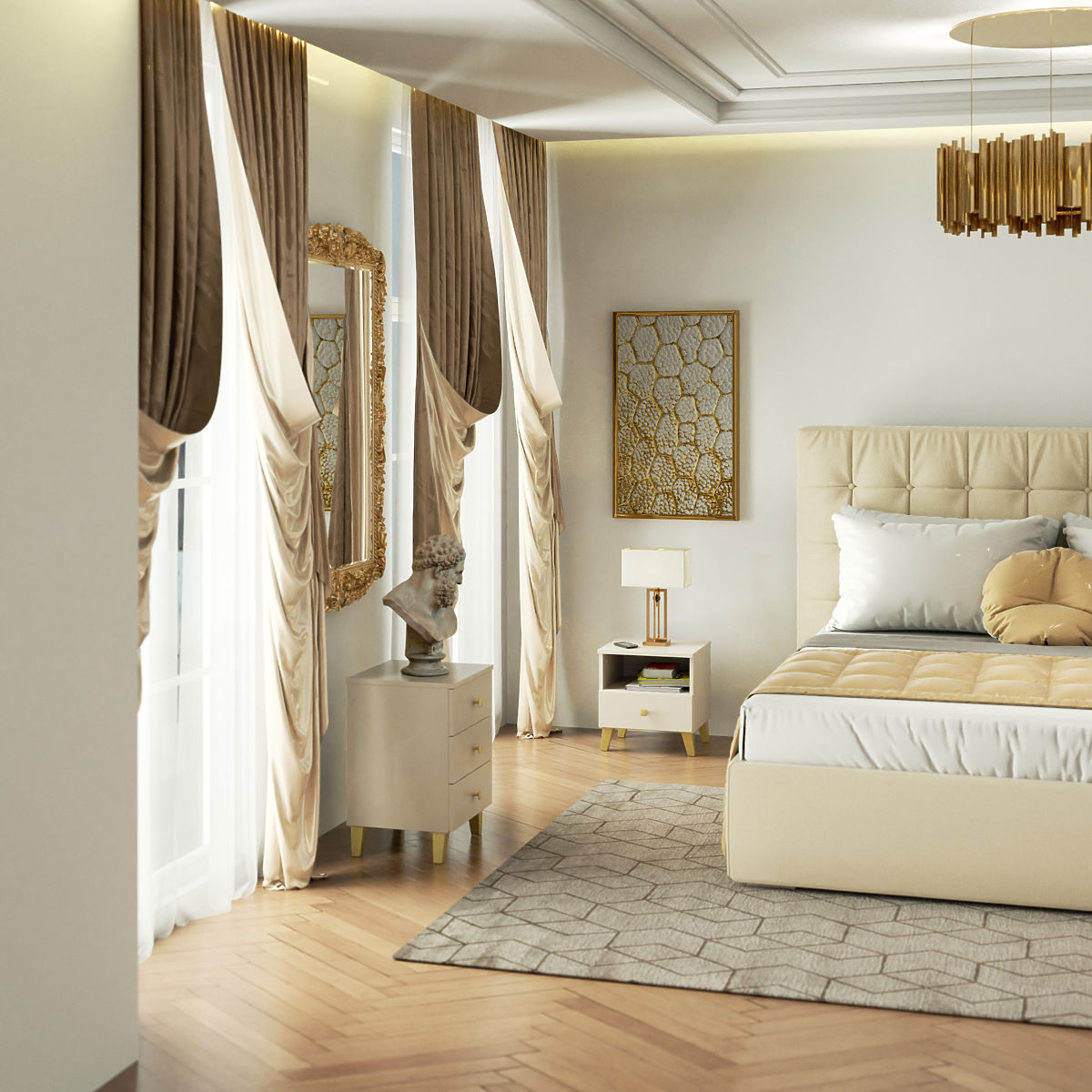 - modern megjelenés - a bútor egyszerű formájú, érdekes kasmír és arany színkombinációval,