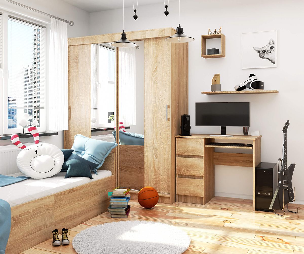 Azok számára, akik kisebb méretű, funkcionális íróasztalt keresnek, ajánlatunk érdekes lehet. A bemutatott A-6 SONOMA balos számítógépasztal hossza 90 cm, magassága 77 cm és mélysége 50 cm, súlya pedig 30 kg. Anyaga kiváló minőségű laminált lap, amely kopásállóvá teszi a terméket. Az asztal látható élei ABS éllel vannak ellátva, ami biztosítja, hogy a bútor ne sérüljön könnyen. Az asztal sok szabad teret kínál, amelyet szabadon lehet elrendezni és kihasználni. Mindez három fióknak köszönhető - mindegyikben egy polc található. Az asztal tartalmaz egy billentyűzettartó polcot is, amely könnyen és szabadon mozgatható. Ez a fém görgős síneknek köszönhető.