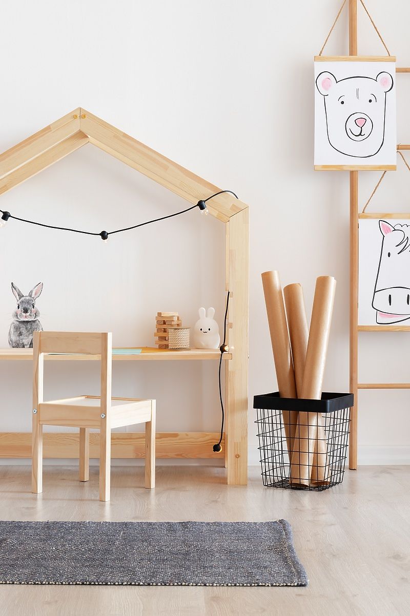 Íróasztal alakú ház, praktikus polccal a gyermekek szobájában lány vagy fiú számára. A minőségi és sima kivitelezés, valamint a hatalmas felépítés biztosítja a gyermek biztonságát és kényelmét a tanulás és más tevékenységek során.